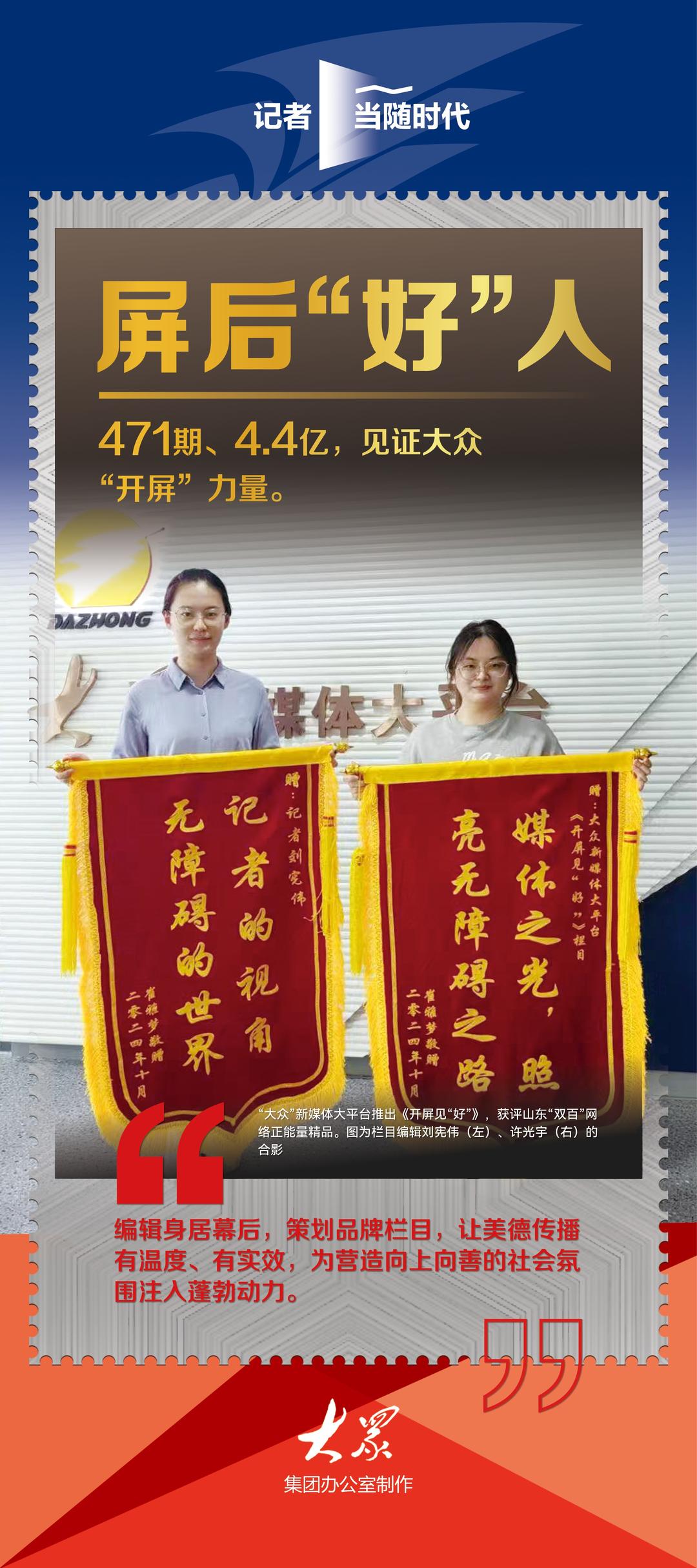 记者当随时代。从“铅与火”“光与电” 到“数与网”“云与端”泸深在线泸深在线,大众报人锚定变革浪潮,始终与时代同呼吸、共命运。以每一帧镜头记录发展新貌,以每一篇报道回应民生关切,以每一次变革紧扣时代节拍泸深在线,以每一次出发传递奋进力量。大众报人扛牢初心使命,始终做党的政策主张的传播者、时代风云的记录者、社会进步的推动者、公平正义的守望者。主流媒体系统性变革的号角愈发响亮,强学习、深调研、勇突破,请看大众报人的答卷。