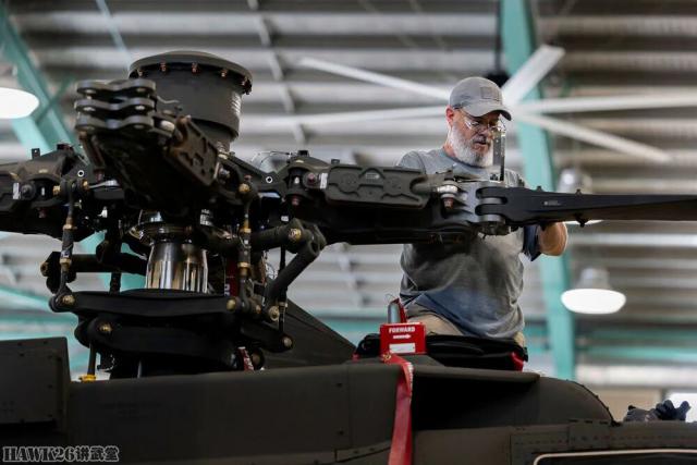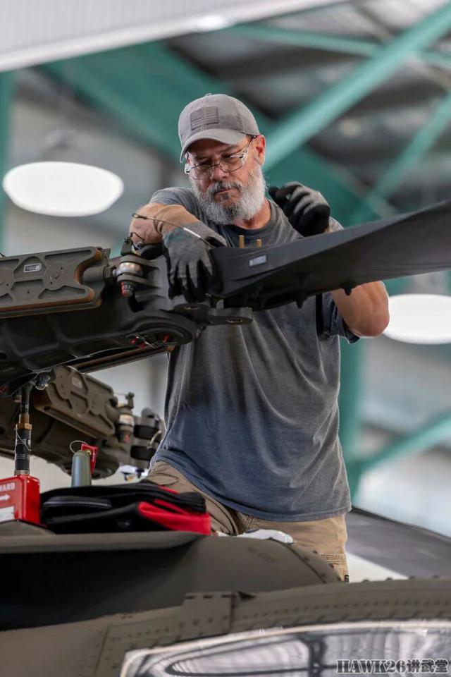 在空运过程中,会拆下"阿帕奇"的主旋翼,卸载之后,需要由技术人员将主旋翼安装到桨毂上。